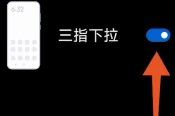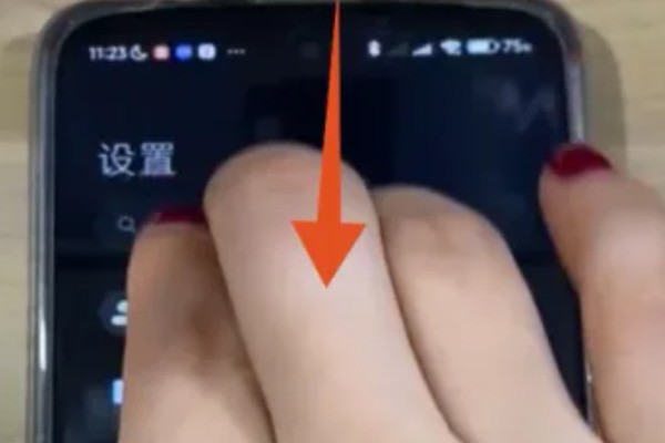 3、打開需要截長圖的界面,根據視頻演示操作,三指由屏幕頂部同時向下拉動,觸發截屏指令。