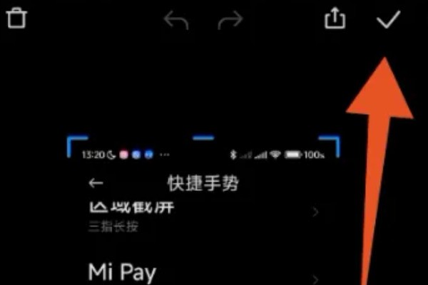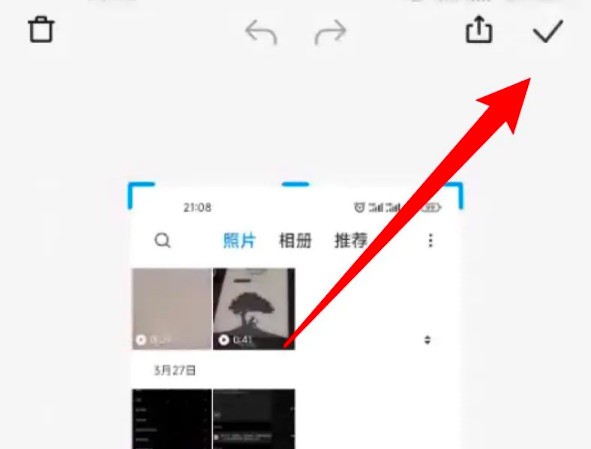 5、跳轉至編輯截屏界面,點擊對勾圖標,即可完成三指下拉長圖截屏。