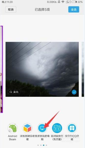 4.把屏幕下方的菜單往右劃,找到發送到我的電腦。點擊發送到我的電腦。