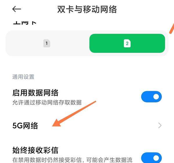進(jìn)設(shè)置→雙卡與移動(dòng)網(wǎng)絡(luò)→找到5G網(wǎng)絡(luò)→點(diǎn)開(kāi)把啟用5G開(kāi)關(guān)打開(kāi)就行。