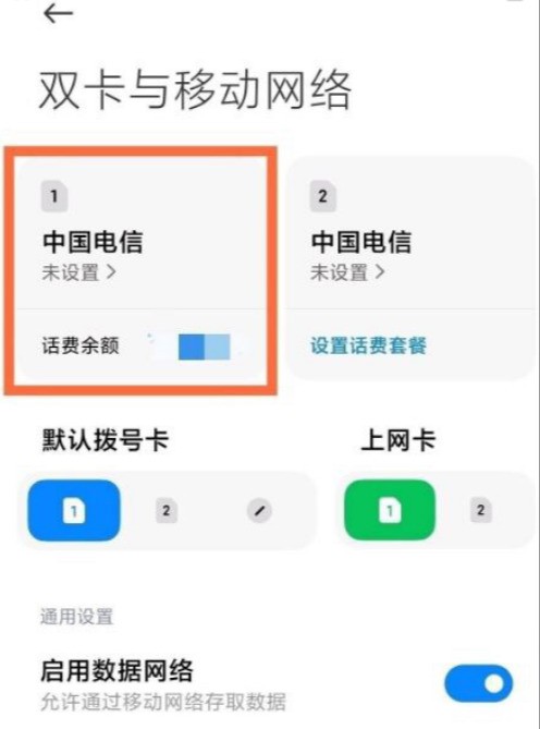 2、選擇要設置的手機卡。
