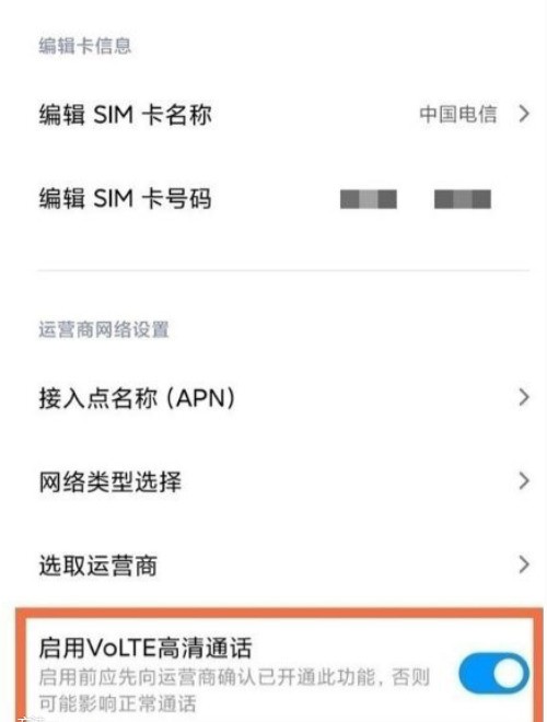 3、打開【啟用VoLTE高清通話】的開關即可。
