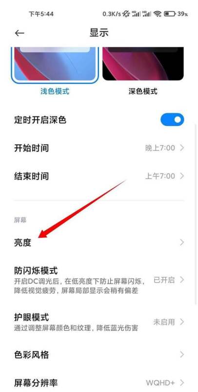 選擇亮度設置在顯示設置頁面中點擊“亮度”選項,進入亮度調節界面。