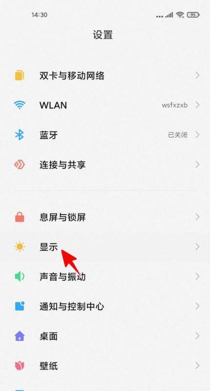 步驟二:進入“顯示”設置在設置界面中,滑動屏幕找到“顯示”選項,點擊進入顯示相關設置頁面。