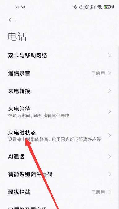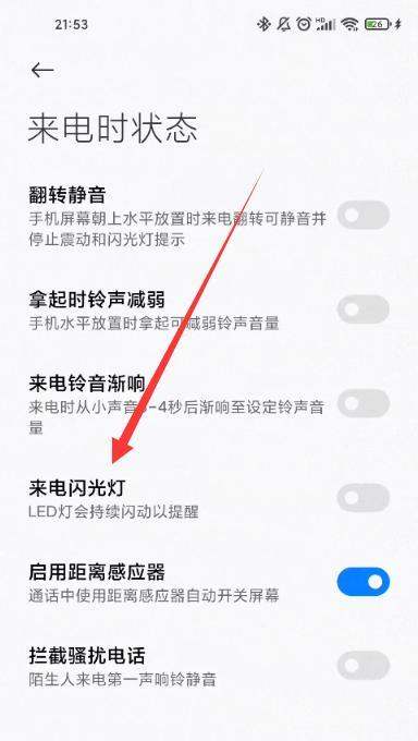 開啟來電閃光燈功能在電話設置中點擊【來電時狀態(tài)】,將【來電閃光燈】選項打開。
