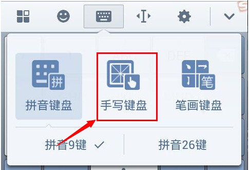3.在鍵盤界面中就有手寫鍵盤,點擊手寫鍵盤。