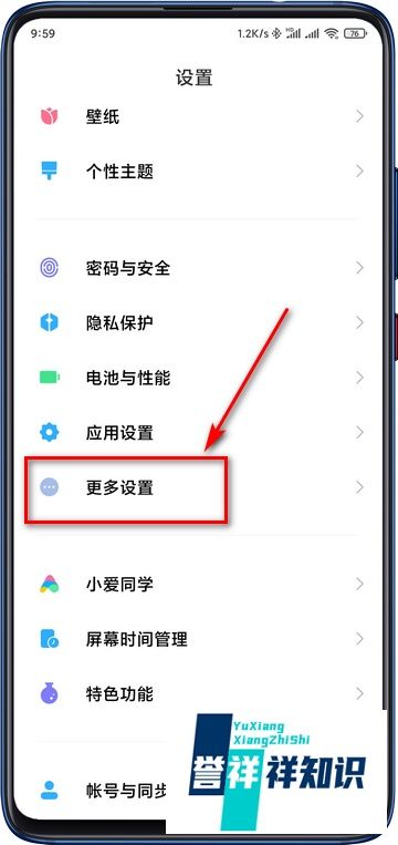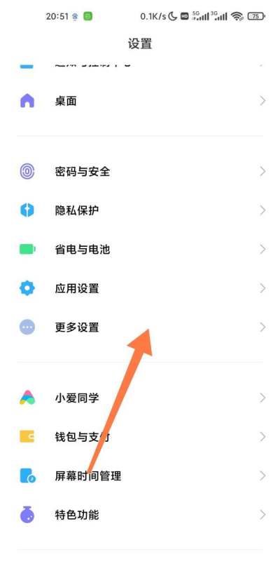 進入更多設置選項在設置界面中,向下滑動找到并觸擊“更多設置”,進入二級功能菜單。