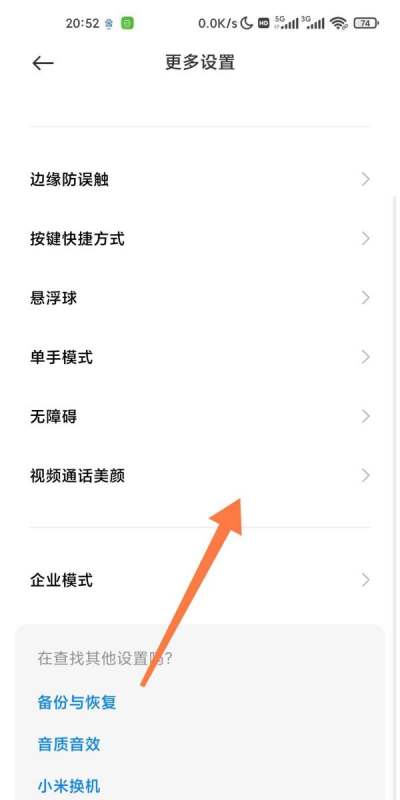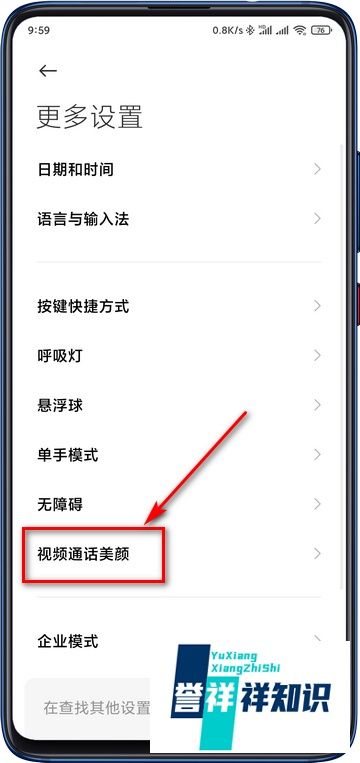 定位視頻通話美顏功能在更多設置界面中,觸擊“視頻通話美顏”選項,進入功能配置頁面。