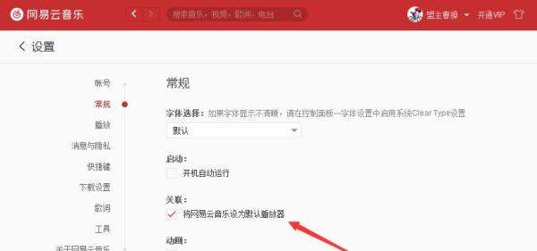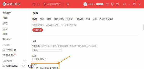 勾選默認(rèn)播放器選項(xiàng):在帳號(hào)頁面的關(guān)聯(lián)項(xiàng)中,找到并勾選【將網(wǎng)易云音樂設(shè)為默認(rèn)播放器】。
