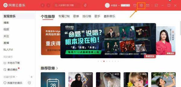 進(jìn)入設(shè)置界面打開網(wǎng)易云音樂客戶端,點(diǎn)擊界面右上角的【設(shè)置】按鈕(齒輪圖標(biāo)),進(jìn)入系統(tǒng)設(shè)置頁面。