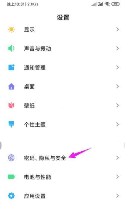 進入安全選項:在設置菜單中下滑,選擇【密碼、鎖屏和安全】選項。