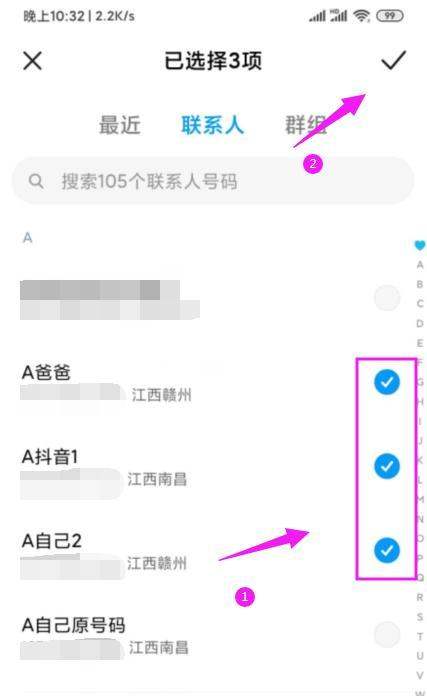 選中聯(lián)系人后,點擊右側的【√】圖標完成添加。