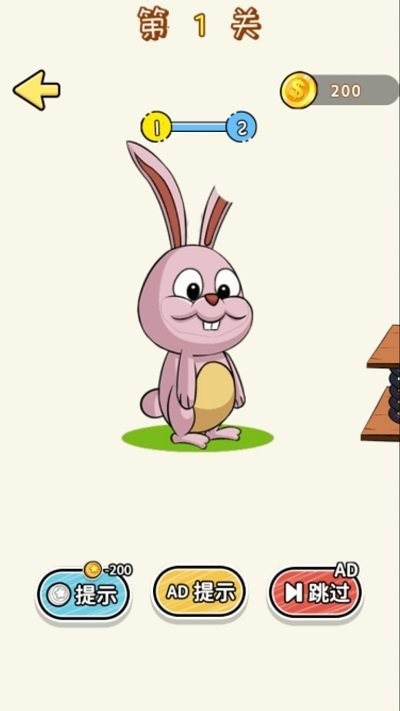 2、觀察圖片,小兔子少了啥?用你的畫筆給它補齊,完成1-1。