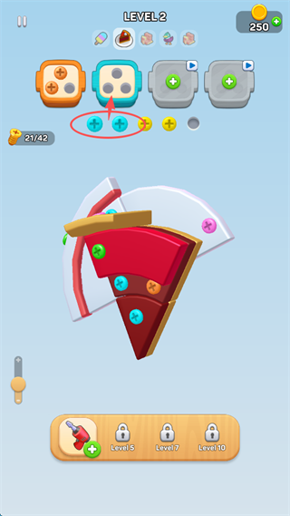 2、三個黃色螺絲收集完成后,會出現另一個顏色的螺絲放置處。