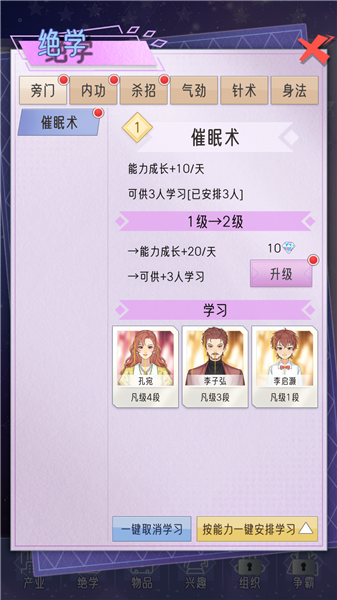 1、高度自由的家族樹養成,每個后代都能按照你的計劃培養成才。