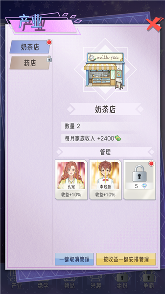 1、允許玩家自定義家主的形象、性別、性格等,打造屬于自己的獨特豪門家主形象。