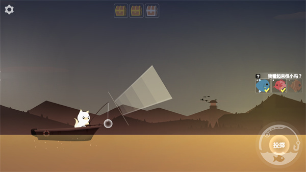 3、點擊“投擲”,甩出魚鉤,同時通過長按“投擲”的時長控制甩出鉤的力度。