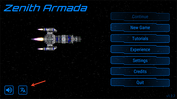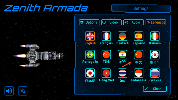 1、進(jìn)入天際艦隊最新版游戲內(nèi)我們點擊做下角的語言。