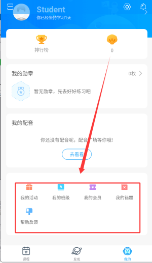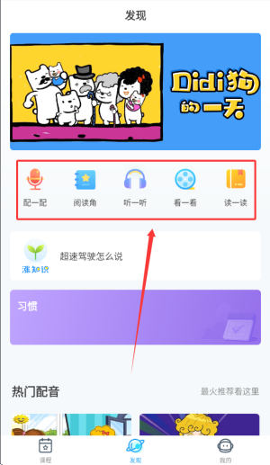3、發現板塊提供了多樣化的學習互動模塊,包括圖文匹配練習閱讀專區聽力訓練視頻觀看及跟讀練習。