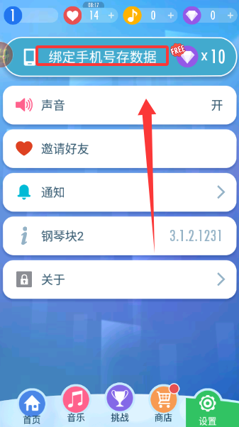 3、在設(shè)置界面綁定手機號將游戲數(shù)據(jù)上傳云端保存,同步后即可參與鋼琴家挑戰(zhàn)賽與全球玩家比拼,賽事分七個聯(lián)賽等級,排名越靠前獎勵越豐厚。